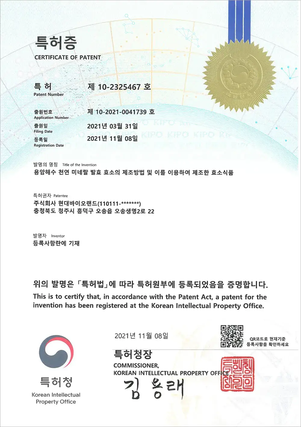 韓国で特許取得済みの製造工法酵素を使用